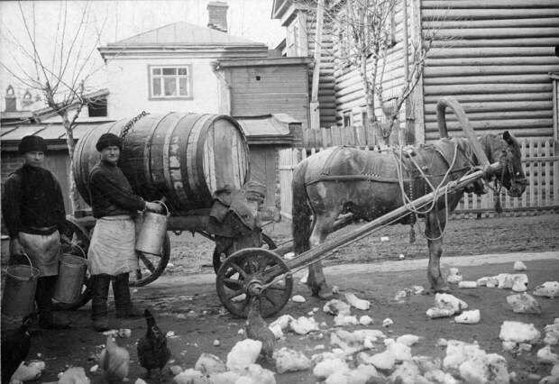 Водовозы на Малой Царицынской улице. Москва, 1900-1910 год. Хамовники