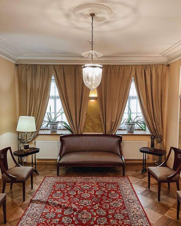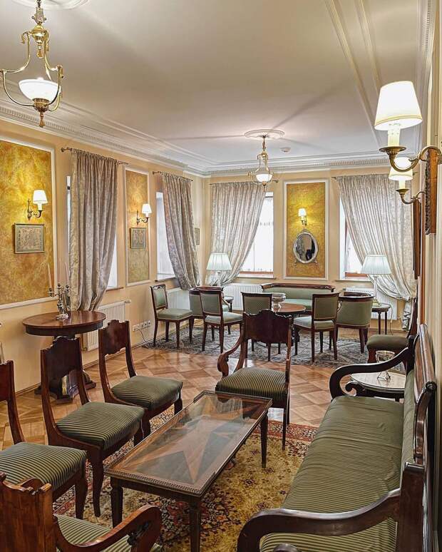 Особняк был надстроен вторым этажом и обновлен в стиле ампир, что придало ему современные черты.