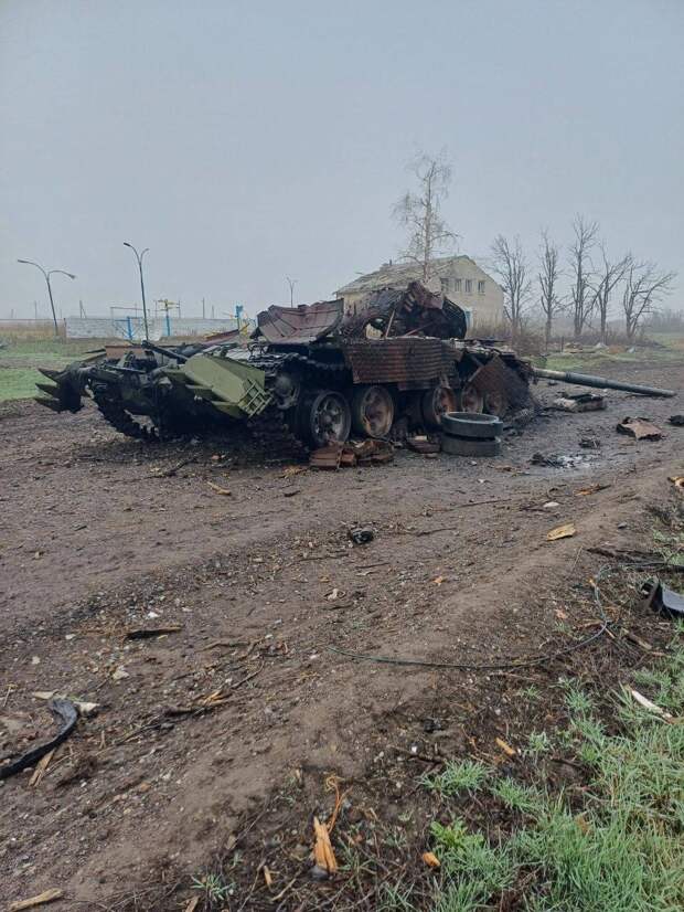 Уничтоженный украинский танк Т-64БВ возле н.п. Опытное в ДНР, наши дни.https://t.me/Ugolok_Sitha/27294