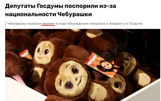 Однако, как уже выяснили дотошные читатели, в 1962 году в журнале «Юность» была опубликована повесть молодого писателя Василия Аксенова «Апельсины из Марокко». И именно на это время приходится написание "Чебурашки". Так что евреем он не является, как бы ни хотелось некоторым депутатам.Если серьезно, то обсуждение национальности сказочного героя в ходе внесения поправок к бюджету, как бы мягко сказать, немного не то, чем следовало бы заняться данному гражданину из эпохи разграбления Руси. Лучше бы предложил, как сборами с его друзей, вроде Фридмана, заменить утильсбор. Впрочем, о чем это мы, проще поговорить про Чебурашку.